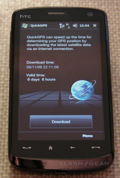 Options include toggling satellite imagery, traffic conditions (for major roads) and directions, which can be either entered on-the-fly or taken from the Touch HD's address book. Google Maps will give either driving or public transport instructions, presented on the map itself or in a list. Use of the integrated GPS receiver is optional; we found initial acquisition times to be slow, certainly in excess of four minutes, though future "warm fixes" were quicker. In recognition of this, HTC preload an app called QuickGPS which downloads the latest satellite data via your internet connection and speeds up acquisition times. QuickGPS can be set to update automatically (which happens once a week, when the information becomes outdated) or manually.