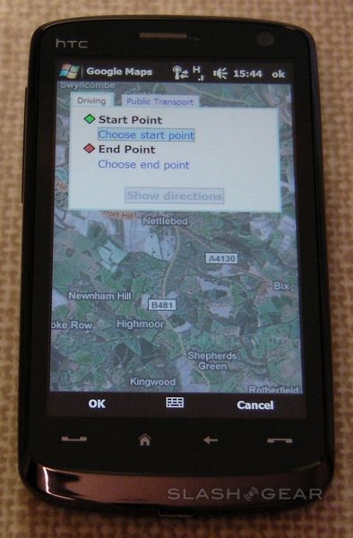 Google Maps is preinstalled on the Touch HD, and take excellent advantage of a display larger than that of some standalone satnavs. As with Opera, zooming in can be triggered by double-tapping the screen (either with finger or stylus) and the page dragged around with a fingertip; unlike Opera, to zoom out you must use the translucent zoom controls in the bottom left-hand corner. Rendering is fast and, in our experience, dependent more on your connection speed than the smartphone's processor.