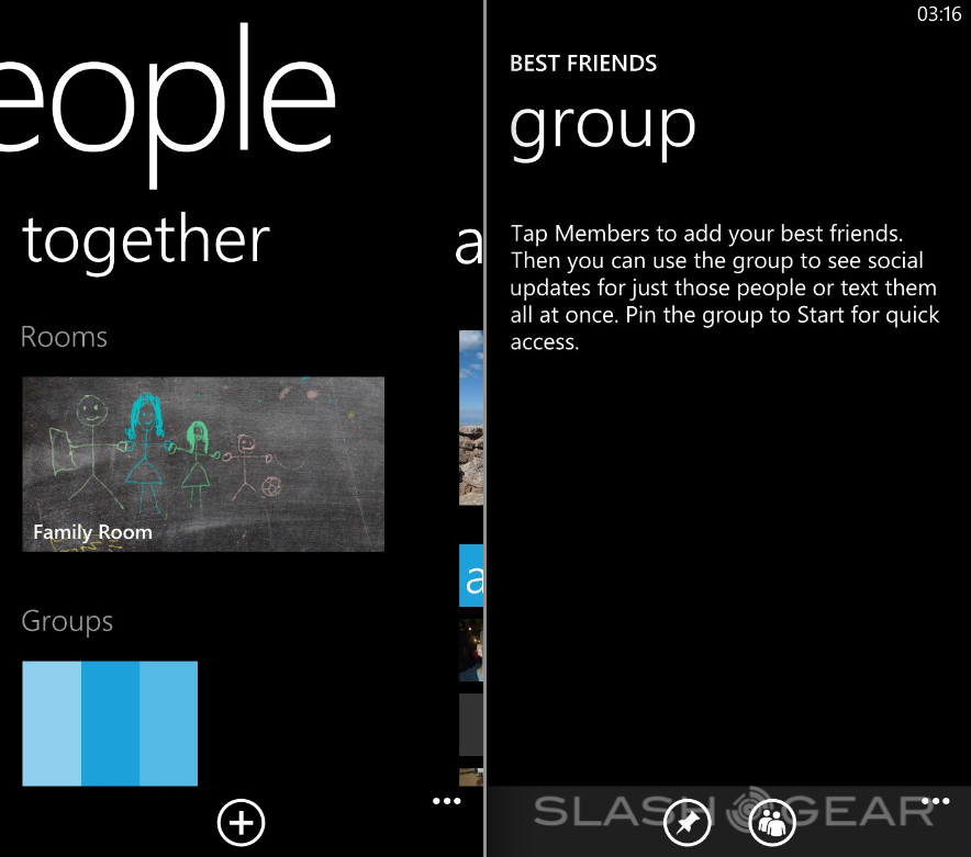 The People app now has an improved "What's new" stream where you can get updates and status details from all your friends and contacts. Now with support for Facebook, Twitter, and LinkedIn. What makes this even more unique and personal is groups. With groups you can set certain friends or family members you wish to see what's new and status updates from. This will cut out the clutter as I'm sure you don't need to know what everyone in your entire contact list posts to Facebook — but the option is there.