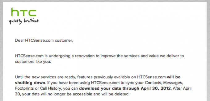 This week the folks at HTC are letting their customers know that their own information retention service for mobile data, HTCSense.com, will be shutting down on the 30th of April. This service has been active with and for HTC customers for some time now and the actions which HTC customers must take to save their data are included below. HTC has given customers a bit over a month to download the data they've had on file with HTC at HTCSense.com, at which point the information will be deleted entirely.