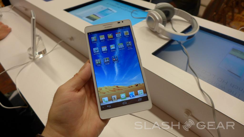 As usual Huawei's tweaked the Android user interface with their own skin, similar to Samsung's TouchWiz or LG's Optimus UI — but we'll need more time with it before we give you final thoughts. Good luck fitting this in your pants pocket and stay tuned for hands-on video coming soon.