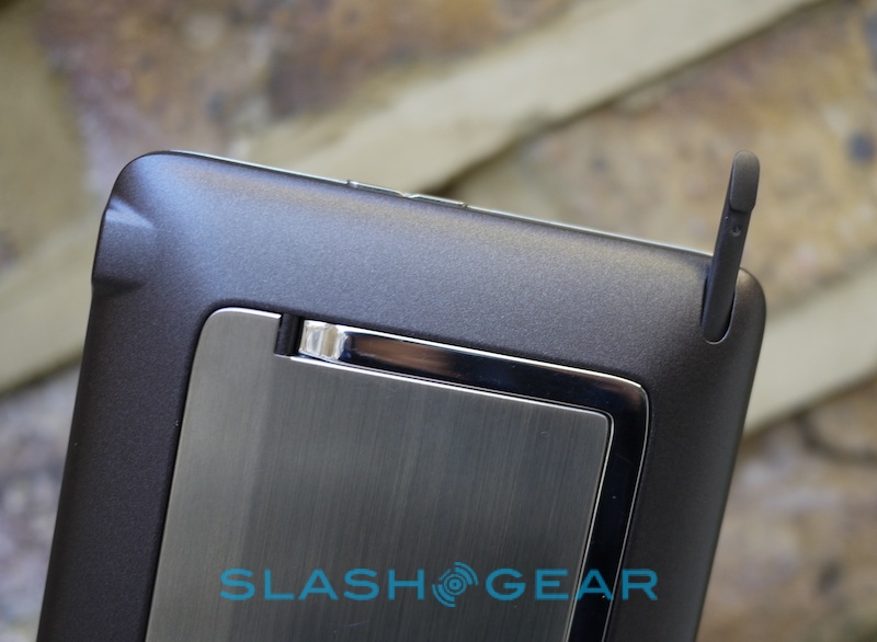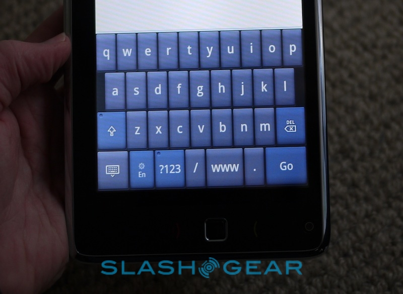 We can't really argue with the build quality, even of this pre-production unit, and the S7 feels sturdy in the hand. At 500g it's 120g more than the Galaxy Tab, as well as being a little longer and thicker; however the Tab is broader and has fewer buttons (it lacks a trackpad or D-pad, for instance, or the physical call/end keys). The S7 feels more comfortable in landscape orientation, and indeed the homescreen is locked in that mode; only the apps will rotate.
