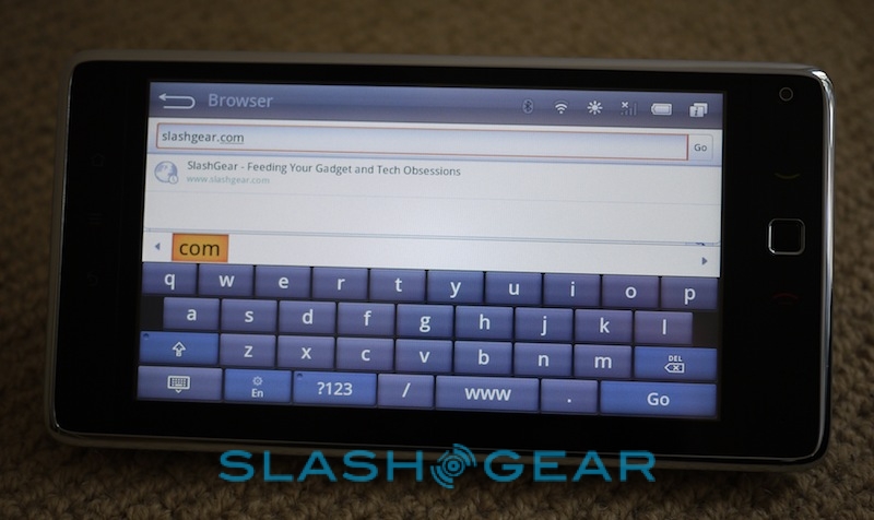 What you do find is that the amount of pressure needed on a resistive panel is significantly higher than for a capacitive screen, and that can make for tiring or sluggish-feeling use. There's no multitouch, either, so zooming in the browser requires you either hit the zoom buttons at the bottom of the display, or double-tap on text. We had mixed results with the text reflowing, too; sometimes a double-tap would resize paragraphs to take advantage of the full screen, other times not.