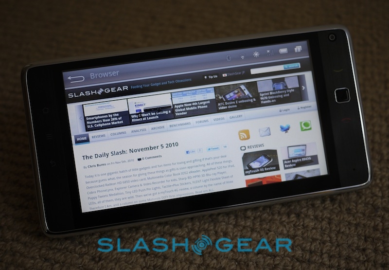 There's no Flash Player 10.1 support, and Huawei hasn't said anything about a Froyo update or, indeed, transitioning the S7 to any later version of Android. Still, the browser renders quickly, though we couldn't see as much on-screen at at time as on the higher-resolution Tab. It was only during browsing that the WVGA resolution really made itself known, with blocky text when zoomed out; usable, certainly, but you're not getting any more pixels than on a regular Android handset.