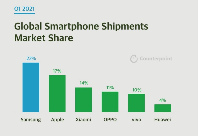 If Counterpoint Research's data is correct, Huawei only sold 4% of that total last quarter, falling way behind Vivo in fifth place with 10% of the global phone market's pie. To be fair to Huawei, it was also the first quarter after it sold off its Honor business which would partially explain the steep decline in sales. That, however, still doesn't bode well for the company.