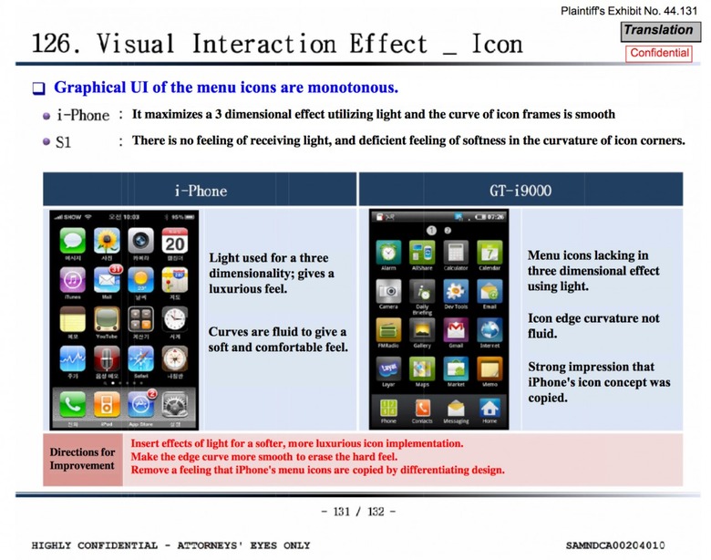 It's worth remembering that the English version of the document is a translation from the original Korean, and as such the exact phrasing probably should be relied on too fully. However, the report sits at odds with Samsung's earlier claims that much of the iPhone's visual and usability appeal is commonplace and merely a sign of the direction the smartphone industry as a whole was progressing in.