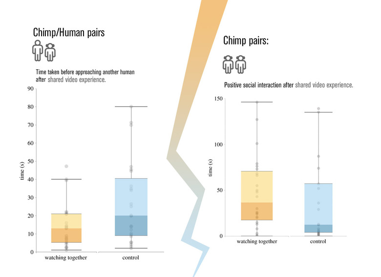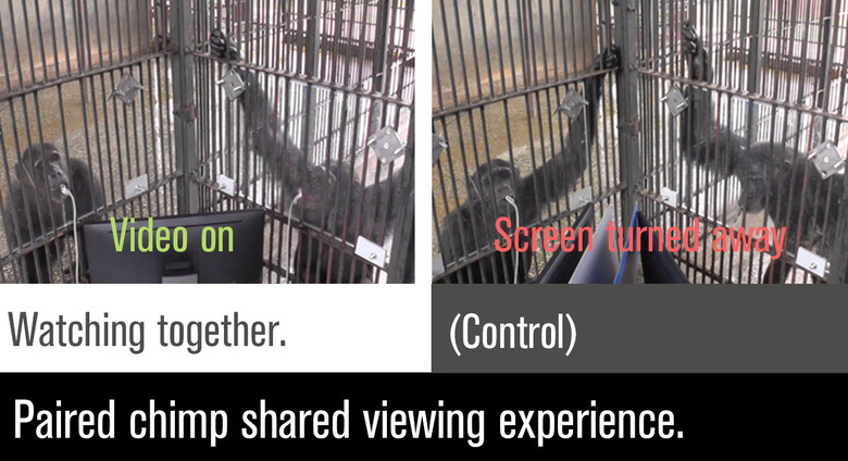 Part of the study showed that pairs of chimps who sat and watched a video later spent more time together outside of the video portion of the test. They were observed later to spend more time grooming one another (a clear sign of positive social interaction) than those who did not share the video experience.