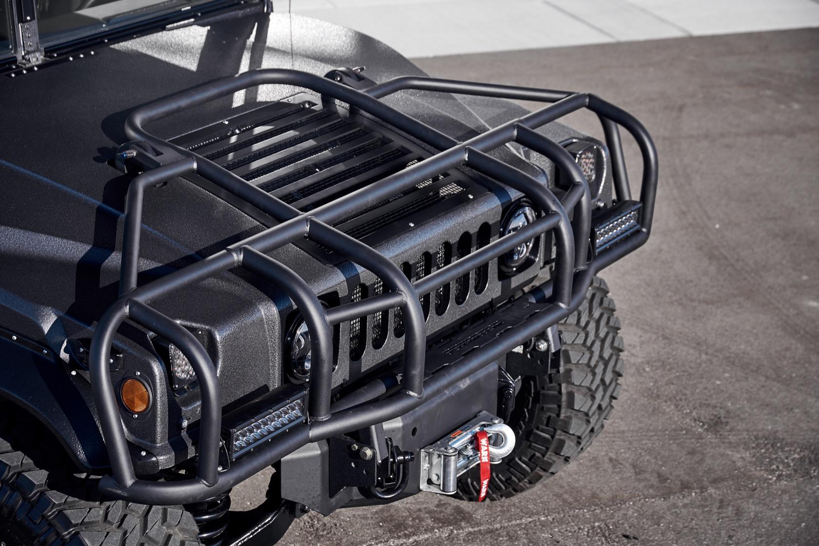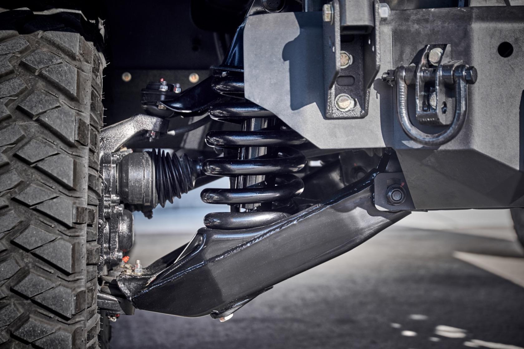 The donor H1 gets stripped down to its frame rails and body, put through a thorough inspection, and then MSA gets started on rebuilding it to its own specifications. That means a 6061 T6 aircraft-grade aluminum body, ceramic underbody and engine bay coating, and special textured body coating.