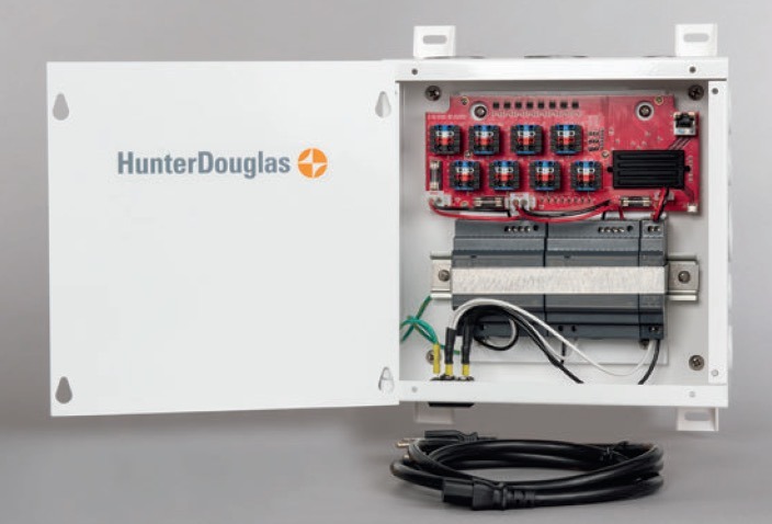 The PowerView+ is a low-voltage system, using a newly-designed 16-shade Smart Power Supply. That's intended to fit into a wall box somewhere out of the way, and connect via ethernet to the home network.