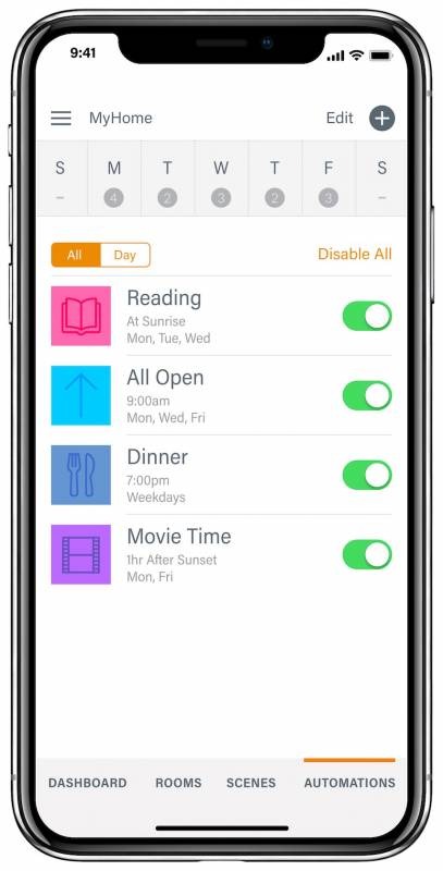 Like PowerView+, the PowerView AC system uses ultra-quiet motors, and connect to the PowerView Hub for integration with third-party smart home platforms like Control4, Crestron, and Savant. Alternatively, they can be controlled through Hunter Douglas' own PowerView app, or the Pebble Remote the company offers. The app allows for grouping of blinds into individual rooms, scheduling, and automations such as automatically opening the blinds based on sunrise, and closing them based on sunset.