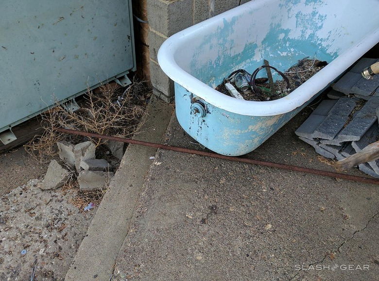 Above you'll find the tossed-down set of lockers, while below you'll see the bathtub. I regret not having recorded the sound of the ghost-dog's yelps, but when you're in the moment, sometimes you just panic. Panic and take a walk into a place you might not ever otherwise have gone.