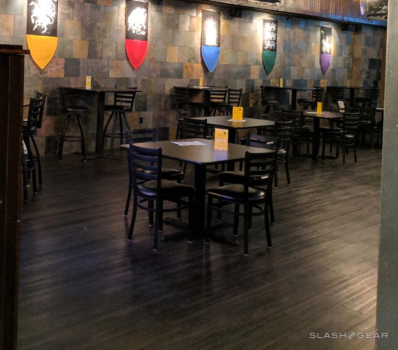 The Google Pixel XL did not fail us as the sun inched out of sight. We decided to heed the signs which suggested a new restaurant was open inside the Enchanted Castle, and entered. To one side, a front desk with a morning star affixed to the wall – to the other, a set of... armor.
