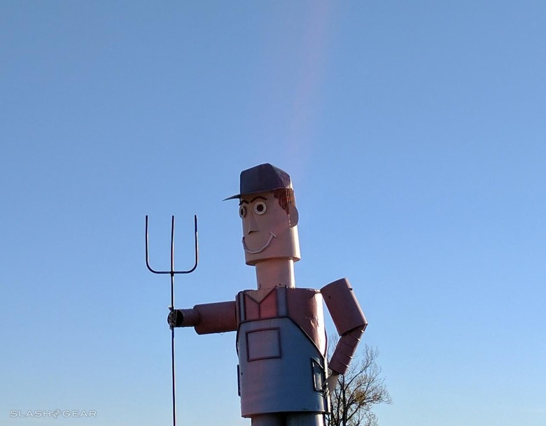 Human farmers generally don't have skin made of metal. But human farmers don't often weather the elements like these farmers have. Notice how the Pixel XL captures all the color we could ask for with its HDR+ capture mode – which is on by default.