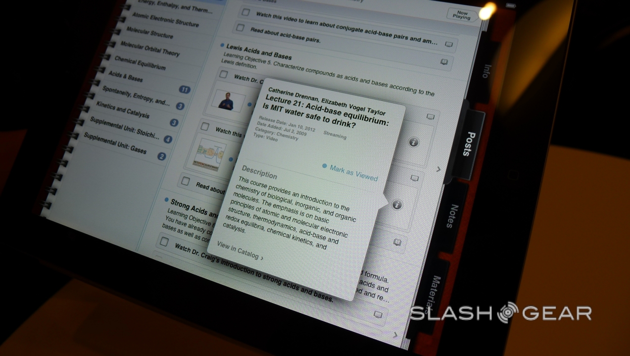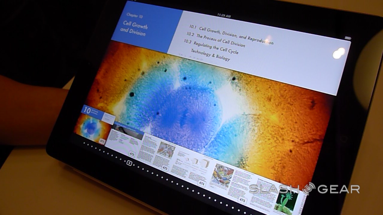 Something you notice from the start is how smooth the iBooks textbooks experience is. The opening video plays instantly, galleries slide and swoop with no lag, and the transitions between text and full-screen animation is pause-free. Apple is, unsurprisingly, demonstrating them on the iPad 2, so we'll have to wait and see how the first-generation – and single core – iPad handles multimedia-heavy texts.