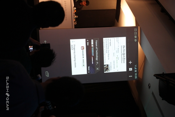 The iPhone 4S has Siri, while Android sticks with its existing voice control system – now supercharged for real-time dictation. Rather than speaking, waiting and then watching a block of text appear, you can now see your words appear in real-time, including dictating smiley faces. It was hard going fighting the background noise at the demo center here to get an accurate impression of how well it all works, so that will have to wait until the full review. Still, it gave us a chance to try the new text control tools for the onscreen keyboard – like tapping a word for the in-line spellcheck – a system which works well. Cut/copy/paste has been boosted with the ability to drag highlighted text around the page.