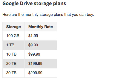 Compared to Google Drive, the pricing is a bit askew. Google gives users 15GB free, and 1TB is only $9.99/month. It's also available across platforms, whereas Apple's offerings are solely for iOS and OS X use.
