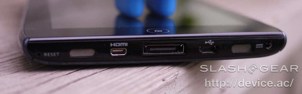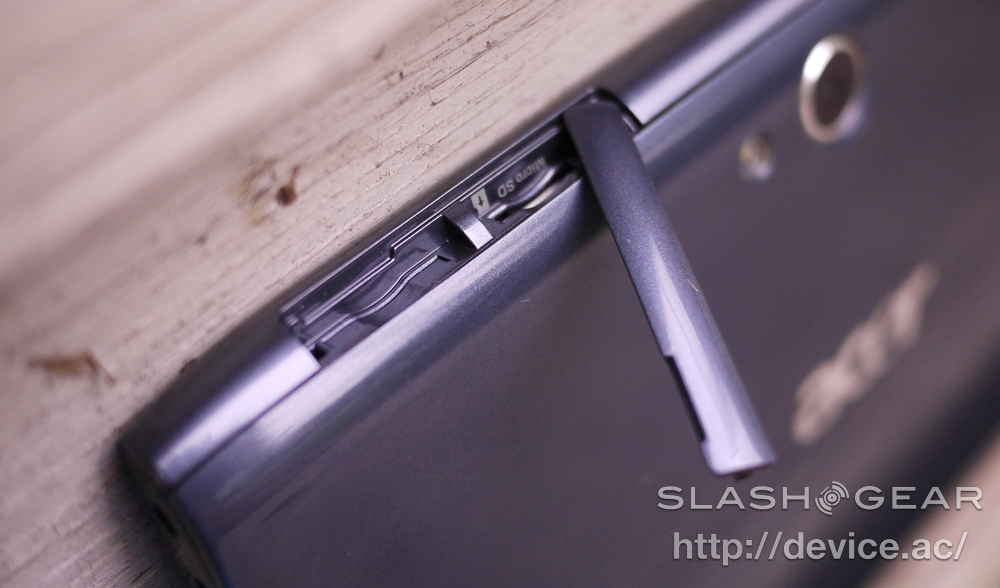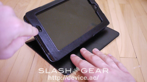 We received a brand new Acer-branded case with this device, one into which you can slide and lock-in your Acer Iconia Tab A100 tightly, some sweet leathery feel all around, allowing everything to breath nicely while the tablet itself is relatively protected from danger. I wouldn't go around tossing the tablet even if you've got this case around it, but you'll definitely be protected against the odd pencil and toothpick attack. Furthermore, this case allows you to sit the device up diagonally so you can watch your favorite YouTube video in style. See more about this case inside the hands-on video below.