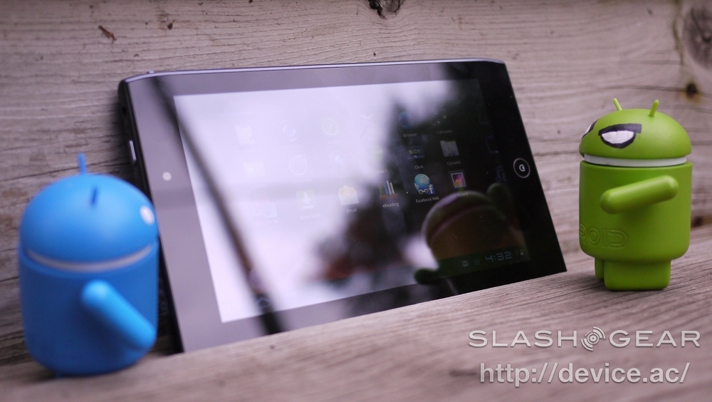 The Acer holds sway over all other Android tablet-classified mobile devices at this very moment because it's only slightly heavier than the original Galaxy Tab yet totes more than double the processor speed, has an almost vanilla* flavoring of Honeycomb, and it's got two fairly decent cameras on it, one on the front and one on the back. *Vanilla in this case means that there's really nothing added to the Android that Google's made save for some organizational apps and 3rd party bonus apps.
