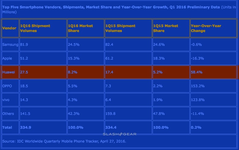 IDC Smartphone Shipments 2016: Q1 Slowest Ever, Apple Falls, Huawei Rises