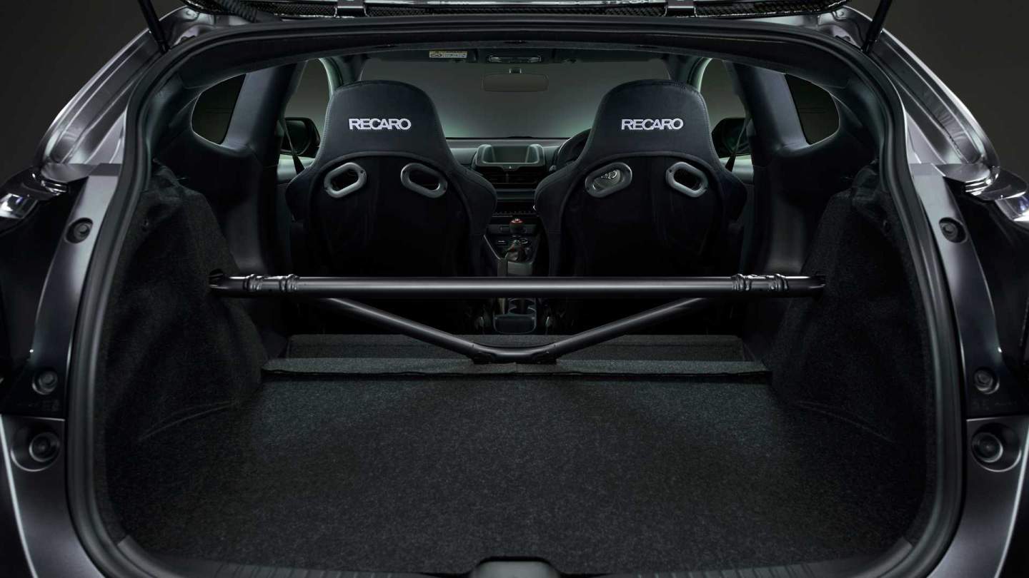 The GRMN Yaris benefits from 565 more spot welds in its architecture than a regular GR Yaris. It also has a carbon-fiber roof, hood, and rear spoiler to reduce weight, while the Toyota deleted the rear seats for good measure. In addition, the GRMN variant is at least half an inch wider and lower than before.