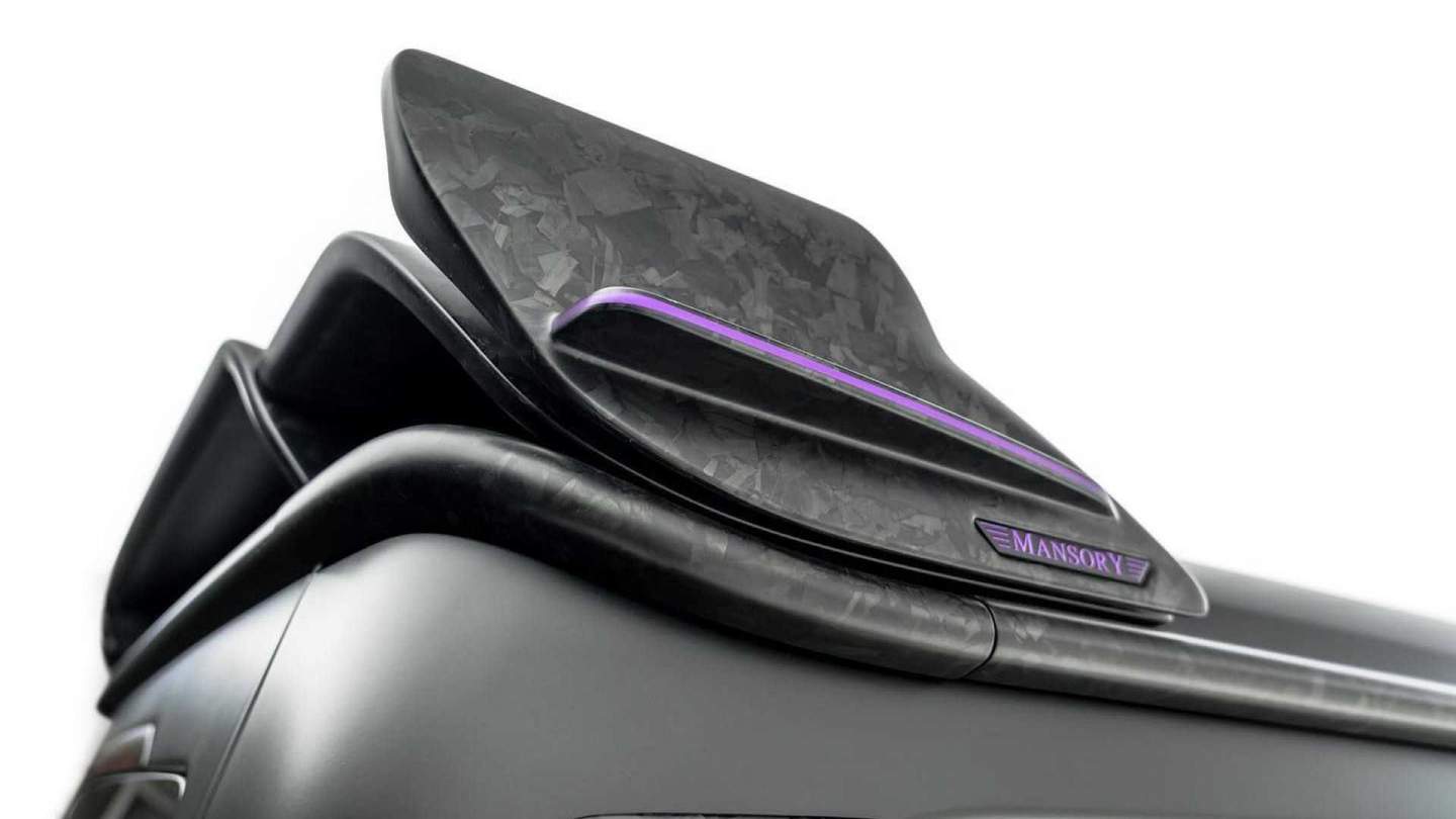 A bespoke Mansory body kit accompanies that eye-catching, transcending purple and black two-tone paint job, including new wheel arches, a unique front bumper, front grille, a radical rear spoiler, and a custom hood design. The wheels are also new, while the vehicle gets some nifty LED light pods on the roof.