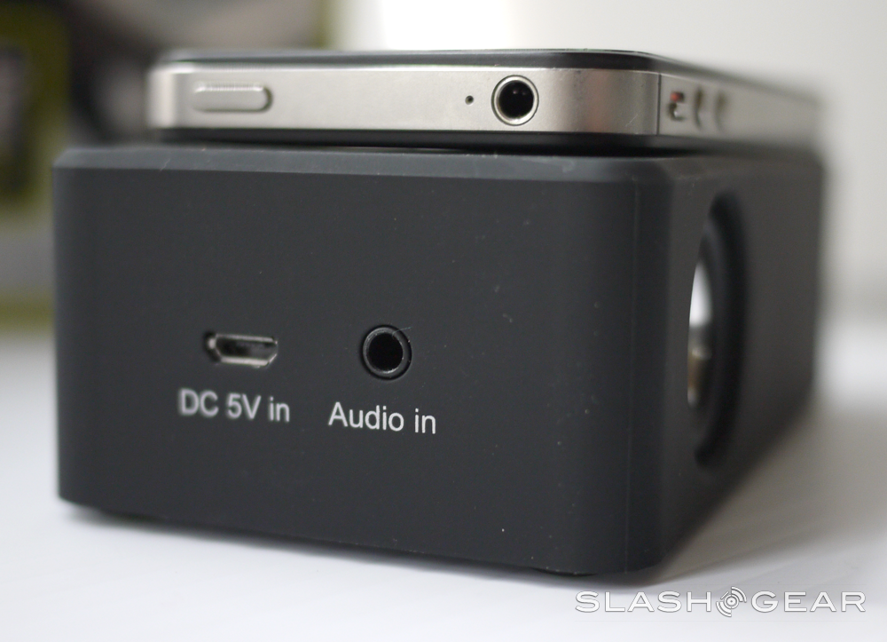 It's what's inside that counts. Inside is iFrogz implementation of NearField Audio, this allowing you to simply place your device down and have its sound amplified through the device electronically – have a peek at the hands-on video above to see what it's all about. This device is powered either by the three AA batteries you'll be placing yourself inside or by a microUSB cord you, also, will be supplying.