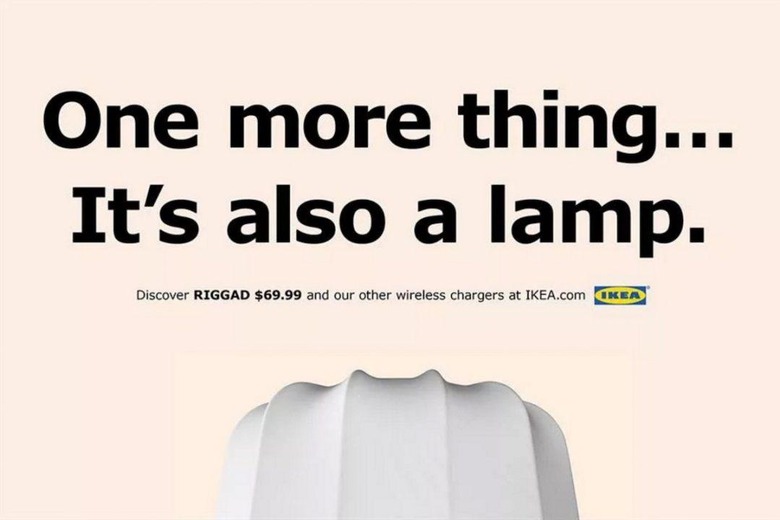 It's part of a new campaign dubbed "This charges everything," one of a number of tongue-in-cheek references to popular taglines that Apple has used previously. The concept is simple: welcoming Apple to the wireless charging fold, and pointing out that IKEA has a selection of products – including lamps, nightstands, and more – which will recharge the newest smartphones without wires.