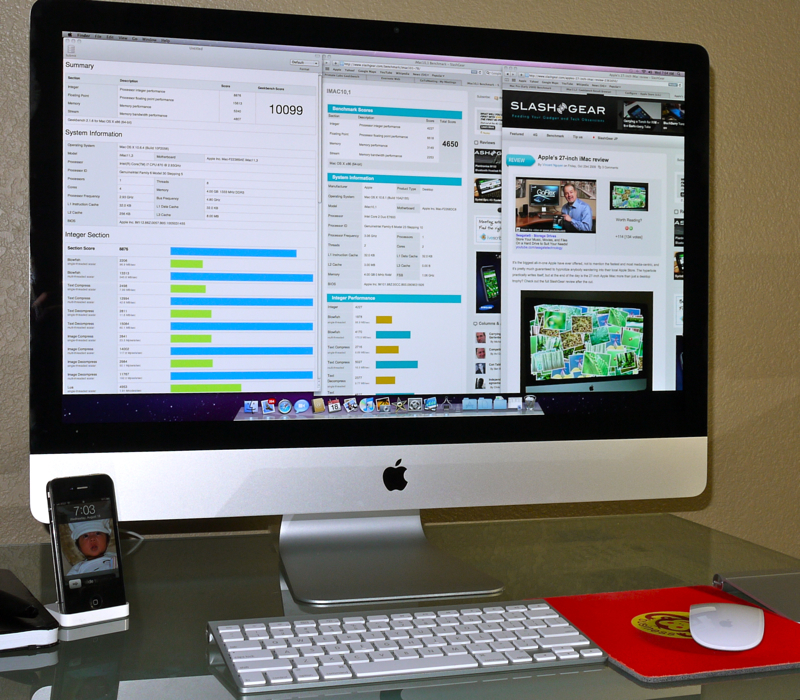 When you start factoring that performance increase in with Apple's pricing, the new iMac's appeal gets even greater. First off, consider that – without the SSD – you're getting Mac Pro (i.e. flagship) performance, plus a brilliant 27-inch display, for less than you'd pay for the current entry-level Mac Pro with a quadcore 2.8GHz Xeon ($2,199 versus $2,449). On top of that you'd need to pair the Mac Pro with a display; the 27-inch LED Cinema Display, using the same panel as the iMac we're testing, will be $999 when it arrives next month.