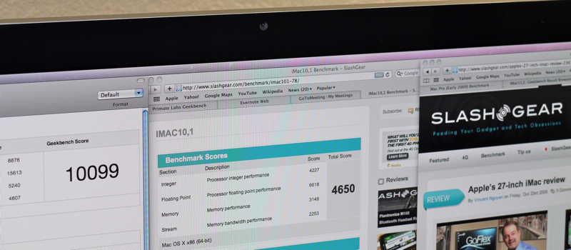 We ran Geekbench, a synthetic test of processor and memory performance, and the quadcore iMac scored a massive 10099 points. In contrast, last year's Mac Pro – with a quadcore 2.67GHz Xeon processor and 12GB of memory – scored 9600. The current generation entry-level iMac – with a Core i3-550 dual-core running at 3.2GHz is scoring around 6700 in Geekbench; the machine positioned at the same point in Apple's range late last year scored just 4,650. More importantly, perhaps, is the increase in L3 cache, with the 8MB in the new iMac matching the old Mac Pro (the old iMac lacked L3 cache completely). Put simply, the L3 cache is used as a high-speed store for data being processed: the more you have, the faster the computer can crunch through whatever it is you're working on. Meanwhile the FSB (Front-Side Bus) is the same 4.80GHz on the quadcore iMac as it is on the old Mac Pro: that's the speed of the pathway between CPU and Northbridge, and a potential bottleneck if it's not high enough.