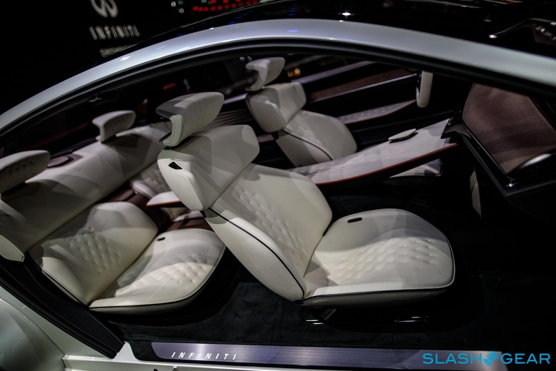 What makes the Q Inspiration Concept particularly special, though, is its engine. The new VC-Turbo is a four cylinder where you might normally expect to find a V6 in a car of this category. It's also the world's first production-ready variable compression ratio engine, which Infiniti promises will deliver both the power of a turbocharged gas engine but the torque and efficiency of a diesel or hybrid.
