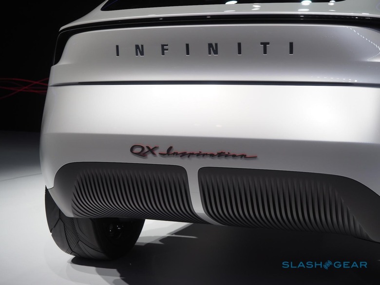 "With the QX Inspiration concept, we were inspired by the Japanese concept of Ma, a focus on the lines and the empty space in between," Karim Habib, Executive Design Director at Infiniti, said of the concept's aesthetic. "What is happening in that space between the lines – the free, natural flow of surfaces – is truly expressive. It's the empty space between the edges that often carries the loudest message."