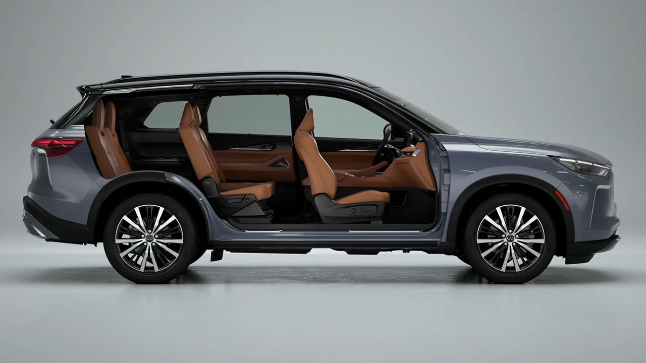 All versions of the SUV have leather-appointed first and second-row seats, a panoramic moonroof, power liftgate, and rear parking sensors. All QX60 SUVs have seven seats as standard with heated and eight-way power-adjustable zero-gravity front seats. The driver seat has dual occupant memory functionality that is linked to the outside mirrors.