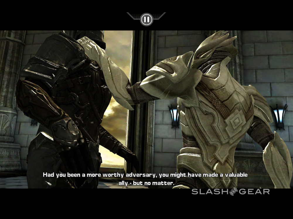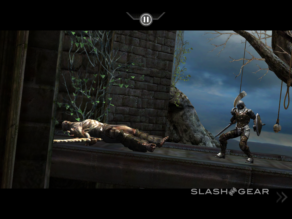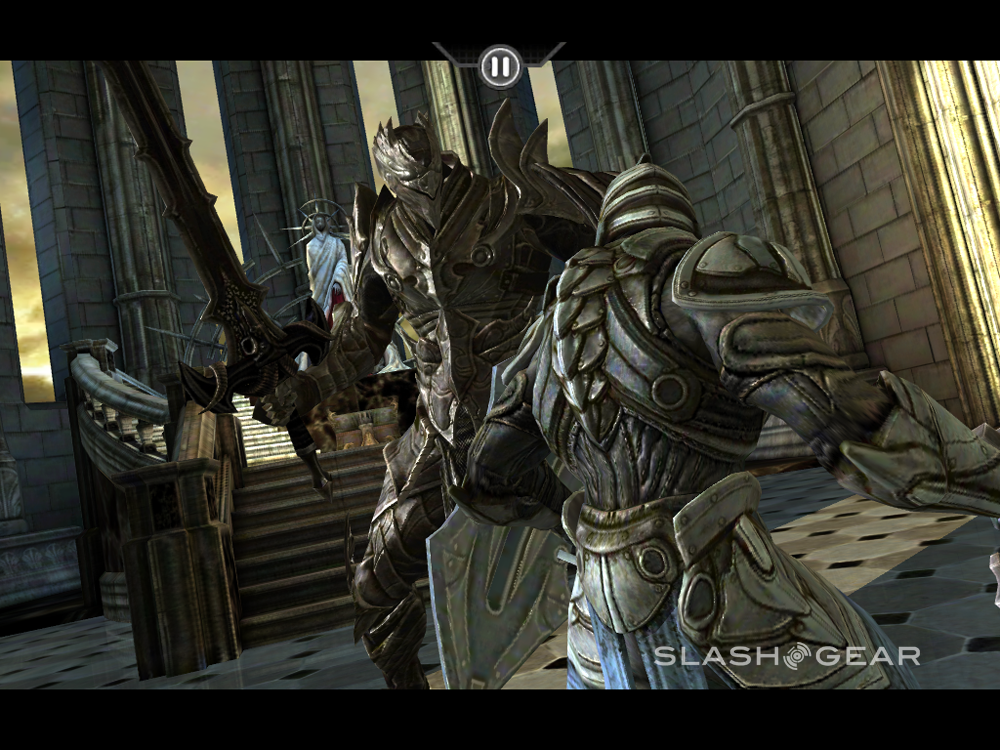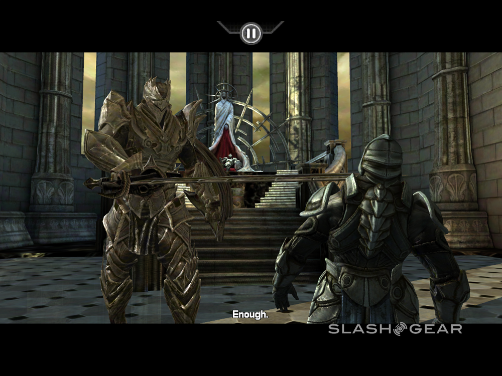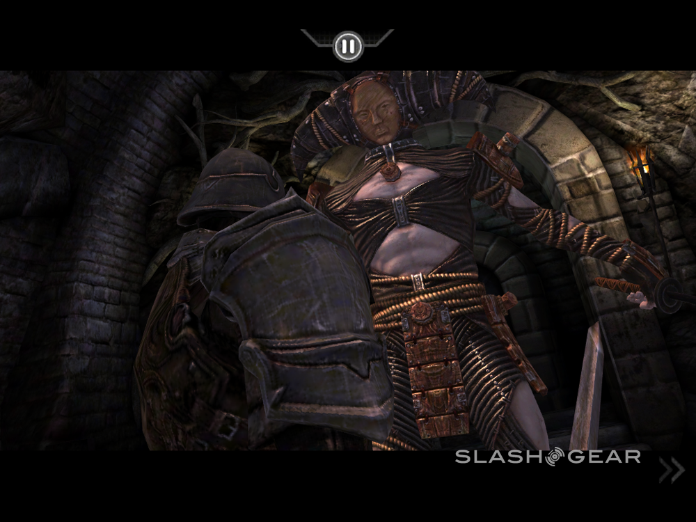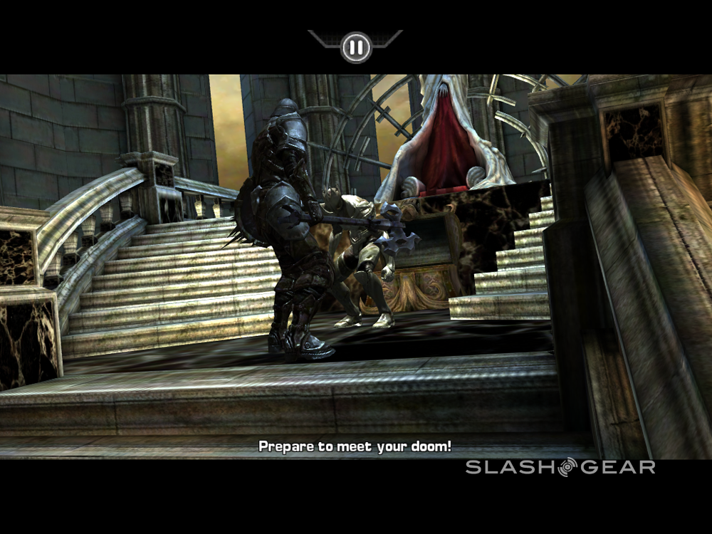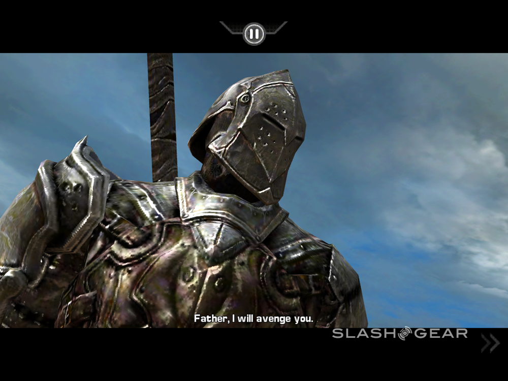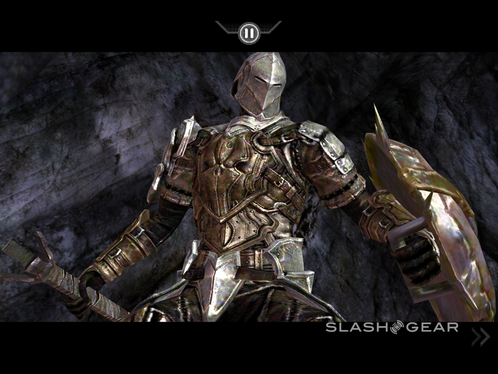 Let us go forth and review an app made specifically for the Apple mobile platform iOS – this particular update coming hard and downloading fully optimized for iPad 2. This is a game that, in a way, takes everything we learned from games like Final Fantasy, Virtua Fighter, and even the non-video game Dungeons and Dragons, and breaks it down to a touchscreen-based, mobile operating system ... masterpiece. It's not the greatest game ever made, and I'll give you a little preview in saying I don't even think I'll play it more than a few times, but is it worth the cash you could potentially lay down on it?