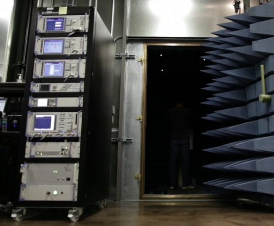 With each anechoic chamber responsible for testing a different aspect of wireless performance, each differs in some unusual and distinct way. From an initial concept design, Apple starts with passive testing with radios simply slotted into hardware mock-ups – "junk in the trunk" as Caballero put it – as the prototypes are refined. Initially the testing is passive, that is, the device is isolated in a "dead" space and its performance tested from every angle. No small part of the expense involved with each chamber is in isolating it from wireless interference. Walls, ceiling and floor are bristling with foam spikes and ridges, carefully designed to make them radio-neutral. The Euroshield doors are similarly complex, ensuring no external signals get in and nothing inside the room escapes detection.