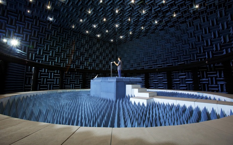 That uniqueness – and the presence of multiple black cloth-clad prototypes – meant we weren't allowed to shoot video or photos; the images you see here are from Apple's own stock. Meanwhile the complexity (and expense) stems from the sheer amount of wireless connectivity companies are now packing into their devices, each demanding their own testing and tweaking. The "black labs" are the first step to eventual wireless certification, and while that final stage is the responsibility of third-parties like the FCC, there's a whole lot of work to be done before a device like the iPhone 4 is ready for external consideration.