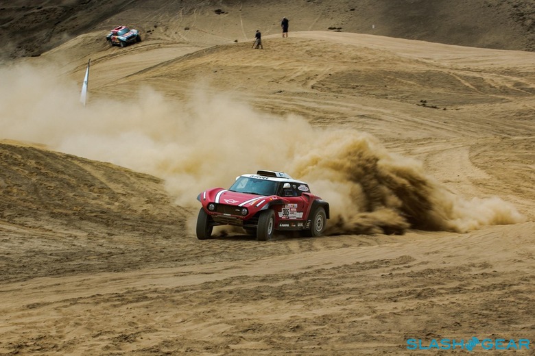 After arriving in Lima on Wednesday, we traveled an hour south to an empty section of the desert for the team shakedown. MINI had invited a handful of media from around the globe to come and experience Dakar, as well as local MINI enthusiasts from around Lima. Its test grounds were made up of several acres of hard packed gravel, mud, and sand: perfect for testing the all-new Buggy. The teams were able to quickly cover about 6,000 kilometers and gather plenty of valuable data. For Bryce and Pete, meanwhile, this would actually be their first experience with the Buggy. Once their test sessions were over, it was time for some fun.