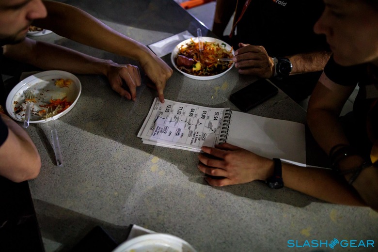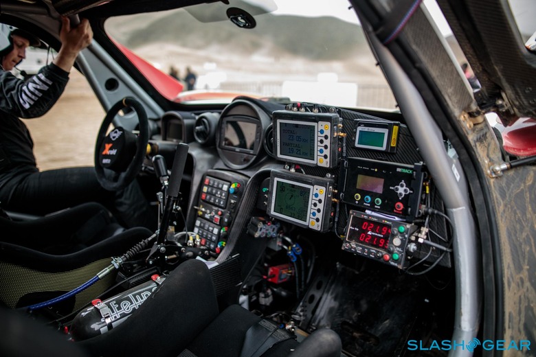 They do that with a combination of old and new tech. The navigator's dashboard is filled with gadgetry, from a Tripmaster that logs current and average speed and distance, an Iritrack emergency two-way data and voice communications device that can report a crash back to the race organizers, to a Sentinel that warns the navigator if they're about to be overtaken by a faster vehicle. Up to two ERTF GPS systems are used for stage guidance, giving a rough indication of where the next waypoint is and then automatically validating that the vehicle has reached it. All of that, though, pales in comparison to the navigator's road book.