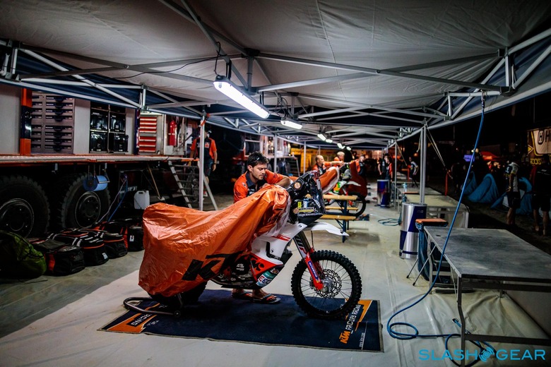 These motorbike riders are all on their own: everything they need is stored and transported in a small box. The Dakar guidebook describes Malle Moto as a "challenge created for Bike and Quad Riders without ANY KIND OF SERVICE." Sure enough, the competitors have to do everything themselves. They ride their bikes, navigate, service and prepare everything, and there is no outside assistance throughout the event only from their fellow riders. You'd be hard-pressed to find another group of such genuinely incredibly-talented individuals, willing to risk it all to finish one of the most arduous races in existence.