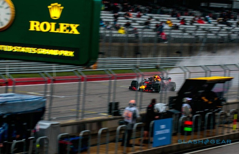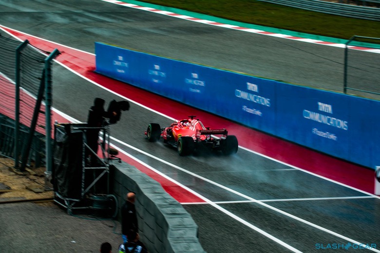 Eventually the rain let up enough for some of the cars to attempt the second practice session. Just how useful the data collected hinges on how close the weather conditions are during your practice to how race day turns out. The Rolex suite overlooking the start line provided an incredible view of the cars flying down the front straight and up the hill. Watching the gallons of water the Formula 1 cars' tires and aero are able to displace is pretty amazing.