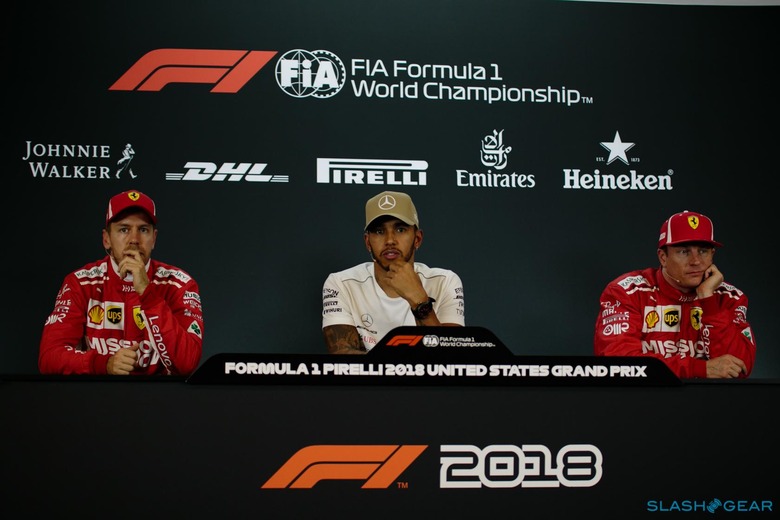 As expected, Mercedes and Lewis Hamilton would take the pole, and he would be followed by the Ferrari duo of Sebastian Vettel and Kimi Raikkonen. All three took the stage in the media center for the drivers' press conference, and it was a fairly surreal experience to be watching them from inside the room instead of from my usual spot on the couch. All three then get rushed outside to the corral, for one-on-one interviews with all of the international news agencies.