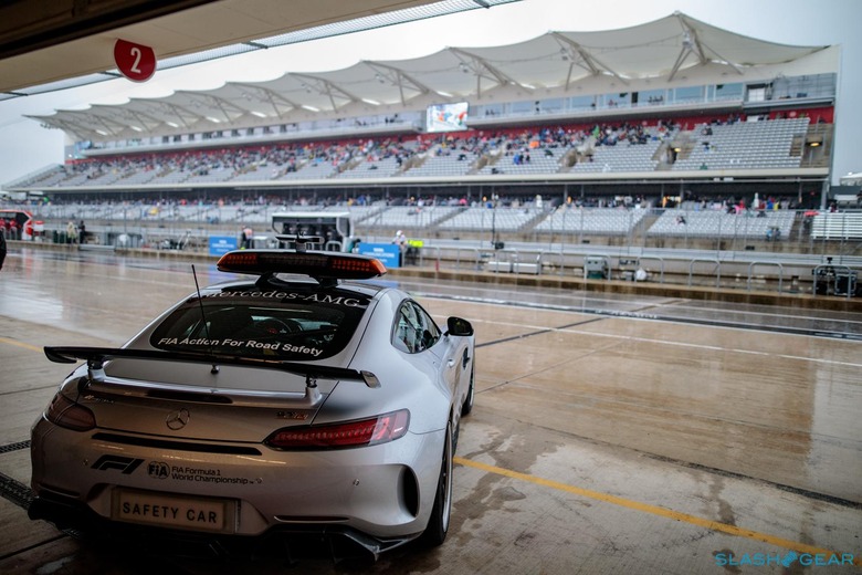 Each track requires different speeds to make sure that doesn't happen, Mayländer explained. The fastest he has to drive, for instance, is around 177 mph on the Baku Circuit in Azerbaijan. For the Circuit of the Americas, he said, his average speed would be around 155 mph. Still, the Formula 1 cars are still capable of moving 7-9 seconds faster per kilometer than even his AMG GT R.