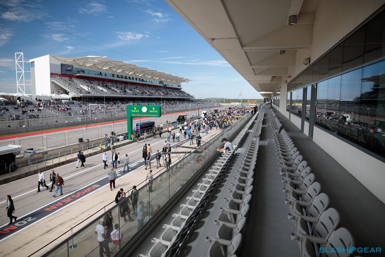 Friday was my first day at the Circuit of the Americas, but even two days in advance I was joining a project already well-underway. The teams and all of the F1 personnel had already been on site for many days already. Indeed, as soon as the checkered flag dropped in Suzuka, Japan, the teams had immediately started packing up all of the equipment, shipping it off to cross the Pacific Ocean in order to reach Austin, Texas in time. Teams and organizers often have double or even triple sets of equipment, pre-staged around the globe to help cut down on costs and make the most of their time. Almost all of the buildings, garages, and personnel I saw at the track would only be here for a few days. Ships transport the heaviest items, and a fleet of 747 transport planes move the rest.