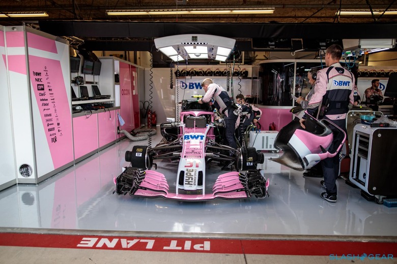 Saturday would be the first day the drivers were on track without any rain, and during the third practice session we saw the lap times shortening with each loop. Unlike the day before with our bird's eye view of the start line, we moved down to where the action was taking place at the back of the Force India garage.