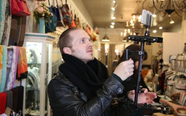 As for how we came up with it? On the first day of filming, I realized I needed a free hand when I walked into the storefront with the actress and I was getting too much shake from all other rigs I had, and I have been blessed with really steady hands. So I was just sitting there kinda scratching my head and getting nervous so obviously I had the GorillaPod in hand, bending it all over the place to release tension.