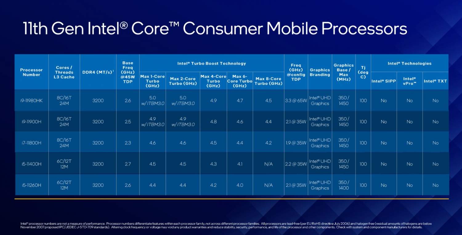 Intel Reveals 11th Gen Core H-Series Laptop CPUs To Unseat AMD