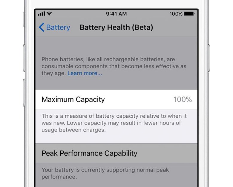 Apple enables users to view whether that slow-down ("power management feature") is active; they can optionally disable it. Both the battery health indicator and power management toggle are found under the Settings > Battery menu, and are available for the iPhone 6 and newer. You can find a detailed breakdown of the power management feature here.