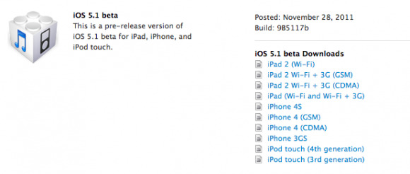 Apple has released the first developer beta for iOS 5.1, making it the first real update since iOS 5 was released last month. A minor update, 5.0.1, was released earlier this month with the goal of addressing user's poor battery performance. There is much speculation that 5.1 will include updates to Siri, the iPhone 4S voice assistant, that will let users give instructions like turning on off settings like Bluetooth or Wi-Fi.