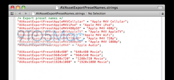 In a file called AVAssetExportPresetNames.strings, there are multiple lines that show a 1920x1080 movie preset. This means that devices such as the iPhone 4, iPad 1 and 2, and fourth-gen iPod touch will soon be able to decode and encode 1080p content. Apps like YouTube and iMovie will also be able to export full HD 1080p videos.