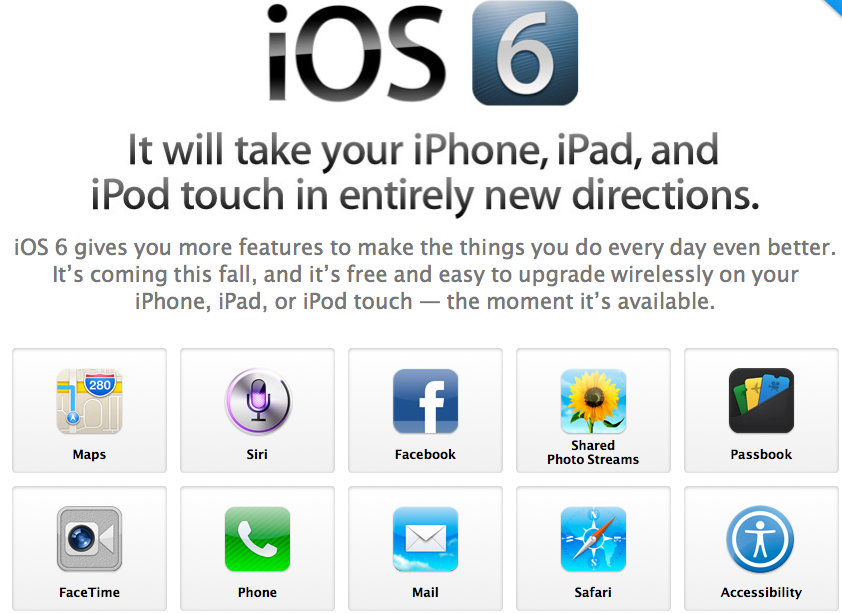 Apple showed us a lot today. From the all new Siri, Safari improvements, their new maps (without Google's help), and even accessibility options like guided access.. Below you'll find plenty of details on all of that and more. From the first version in 2007 to today iOS has seen significant changes and tons of new features with every iteration. The picture below shows the progress as it has grown. They detail everything over at Apple.com/ios6.