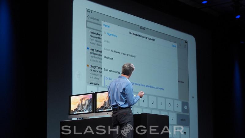 "It has dev features so you can extend your experience and build apps you couldn't do before," suggested Cook. Apple's Craig Federighi took the stage and went on to note that iOS 8 takes iOS 7 and builds on it.